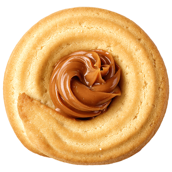 A buttery cookie filled with rich, smooth caramel that melts in your mouth.